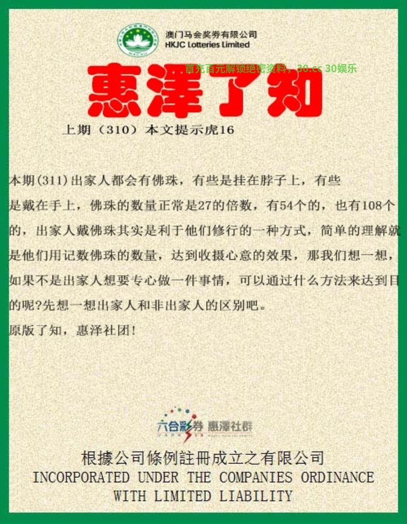 310期 💰单双中特💰 ‖双数双数‖开:虎16中